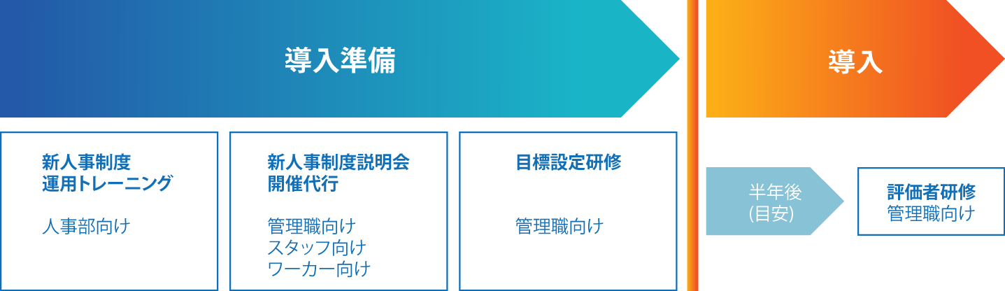 ⼈事制度の設計が固まった後、新制度の社内導⼊を⽀援するサービスです。